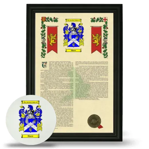 • Our most popular product, the Armorial, in a wooden Black Frame with an 8" Round Mouse Pad