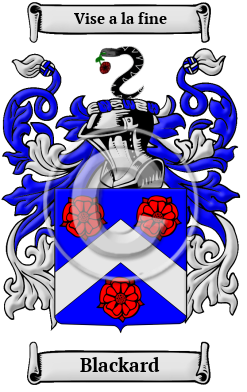 | Blackard History, Family Crest & Coats of Arms Early Origins of the Blackard familyThe surname Blackard was first found in Berwickshire, Scotland, where the family claim descent "from the lands of Blackadder on the stream of the same name in the Merse division of Berwickshire. "Blakadir de eodem in the Earldom of March in 1426. Adam of Blacathathir was one of those sent to conduct the envoys with Princess Cecilia's dower to Edinburgh in 1477, and Charles Blakater had a protection and safe conduct to travel in England in 1486. " 1 But before these entries, Adam Blacater (fl. 1319), "was descended from a family of good position in Scotland, and after studying at several universities on the continent became successively professor of philosophy at Cracow in Poland, professor of the same subject at Bologna, and rector of one of the colleges of the university of Paris. " 2 Cuthbert Blackadder (d. 1485), was "a chieftain of the Scottish border, received his surname and estate from James II in 1452 for his success in repelling the English marauders on the Scottish frontier. By his prowess he earned for himself the title of the 'chieftain of the south.' He and his seven sons who accompanied him on his expeditions were also named, from the darkness of their complexions, the 'Black band of the Blackaders.' When the kingdom was placed in a posture of defence against Edward IV, the Blackaders raised a force of two hundred and seventeen men, and also planted their castle with artillery, and left in it a strong garrison. " 2 Early History of the Blackard familyThis web page shows only a small excerpt of our Blackard research. Another 110 words (8 lines of text) covering the years 1461, 1477, 1494, 1508, 1615, 1622, 1626, 1664, 1670, 1685, 1686 and 1729 are included under the topic Early Blackard History in all our PDF Extended History products and printed products wherever possible. Blackard Spelling VariationsThe name Blackard, appeared in many references, and from time to time, the surname was spelt Blackadder, Blackader, Blackater, Blacketter, Blaicketter, Blacader and many more. Early Notables of the Blackard familyRobert Blackadder (died 1508) a medieval Scottish cleric, diplomat and politician, who was Abbot of Melrose, Bishop-elect of Aberdeen and Bishop of Glasgow; Sir Alexander Blackadder; John Blackadder (1615-1686), Scottish Covenanting minister; John Blackadder (or Blackader) (ca. 1622-1685), a Scottish eminent Presbyterian Covenanter preacher; Sir John Blackadder, 1st Baronet (1626-c. 1670); Robert Blackadder (c.1461), a... Another 54 words (4 lines of text) are included under the topic Early Blackard Notables in all our PDF Extended History products and printed products wherever possible.
