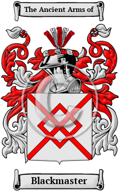 England Etymology of BlackmasterWhat does the name Blackmaster mean? The ancient roots of the Blackmaster family name are in the Anglo-Saxon culture. The name Blackmaster comes from when the family lived in or near one of the two towns called Blanchminster and Blackmanstone in Essex. It is also probable that the name is of nickname derivation and was used to indicate a man with a dark complexion or dark hair. Early Origins of the Blackmaster familyThe surname Blackmaster was first found in Cornwall, in the parish of Egloskerry. "In the north transept of this church lies, as is supposed, Guy de Blanchminster, or De Albomonasteris, rector of Lansallos, younger brother probably, of Sir John Blanchminster, who died without issue, and was the last of that family. He is represented as having long hair, and dressed in a gown, with his purse by his side. The purse in my opinion alludes to the donations of himself and relatives. I am inclined to think that the tithes of Egloskerry once belonged to the Blanchminsters." 1 Binnamy Castle in the parish of Stratton, Cornwall is said to have been built by Ralph de Blanchminster, about the year 1335. "Dr. Borlase describes this house as being situated about half a mile from Stratton, and a furlong from the ancient causeway made by the Blanchminsters. Of this venerable mansion no remnants remain. In the church of Stratton there is a monument of a knight with his effigies in armour, supposed to be intended for one of the Blanchminsters. It appears that some lands of considerable value were given by one of the Blanchminsters for charitable purposes to this parish. The intended object has, according to modern usage, been understood to be the church and poor." 1 Early History of the Blackmaster familyThis web page shows only a small excerpt of our Blackmaster research. Another 270 words (19 lines of text) covering the years 1086, 1273 and 1500 are included under the topic Early Blackmaster History in all our PDF Extended History products and printed products wherever possible. Blackmaster Spelling VariationsOne relatively recent invention that did much to standardize English spelling was the printing press. However, before its invention even the most literate people recorded their names according to sound rather than spelling. The spelling variations under which the name Blackmaster has appeared include Blackmonster, Blackemonster, Blackmanstone, Blauncmustre, Blancmustre, Blancmoster and many more. Early Notables of the Blackmaster familyMore information is included under the topic Early Blackmaster Notables in all our PDF Extended History products and printed products wherever possible. Migration of the Blackmaster familyAt this time, the shores of the New World beckoned many English families that felt that the social climate in England was oppressive and lacked opportunity for change. Thousands left England at great expense in ships that were overcrowded and full of disease. A great portion of these settlers never survived the journey and even a greater number arrived sick, starving, and without a penny. The survivors, however, were often greeted with greater opportunity than they could have experienced back home. These English settlers made significant contributions to those colonies that would eventually become the United States and Canada. An examination of early immigration records and passenger ship lists revealed that people bearing the name Blackmaster arrived in North America very early: a number of settlers who arrived in the New World by the 19th century.