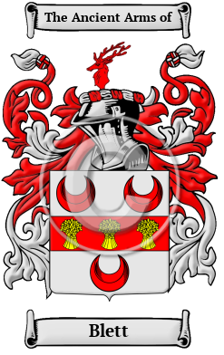 | Blett History, Family Crest & Coats of Arms Etymology of BlettWhat does the name Blett mean? The name Blett was first used by a Strathclyde-Briton family from the Scottish/English Borderlands. It was a name for a happy or cheerful person having been derived from the Old English word blithe. 1 2 Alternatively, the name could have originated at Blyth in Northumberland or in the West Riding of Yorkshire. Both parishes derive their name from the Old English "blithe," meaning "the gentle or pleasant one." 3 The Yorkshire parish anciently in Nottinghamshire is the oldest dating back to the Domesday Book of 1086 where it was recorded as Blide. 4 Another source notes "This place, anciently called Blia and Blida, was chiefly noted in former times for its religious and charitable establishments. In 1088, a priory was founded in honour of the Blessed Virgin, by Roger de Builly and his wife Muriel, for monks of the Benedictine order; which, though considered as an alien priory, being in some respects subordinate to the abbey of the Holy Trinity, near Rouen, in Normandy, was yet spared at the suppression of alien priories, and subsisted till the general dissolution, when its revenue was estimated at £126. 8. 2. An hospital for lepers, dedicated to St. John the Evangelist, was founded by Hugh de Cressy, lord of Hodsock, in the reign of John." 5 Early Origins of the Blett familyThe surname Blett was first found in Berwickshire an ancient county of Scotland, presently part of the Scottish Borders Council Area, located in the eastern part of the Borders Region of Scotland. 6 Blyth was an old barony in the lordship of Lauderdale some time ago. The first on record was of William de Blyth of Chirnesyde in Berwickshire who represented the family and rendered homage to King Edward I of England on his brief conquest of Scotland in 1296. A few years later, the seal of Adam de Blyth was appended to an account of goods purchased at Perth in 1302. James Blyth was burgess of Dundy (Dundee) in 1485. 7 Further south in England, Blythe, Lancashire has an interesting history. It was originally held by Geoffrey Travers, whose son Henry, was called "de Blythe." Henry de Blythe's descendants "John and Robert de Blythe occur among the names of subscribers to the stipend of a chaplain at Ormskirk in 1366 and the latter also in the Poll Tax Roll of 1381. John de Blythe attested Scarisbrick charters in 1399 and 1401, and was the father of Roger, who in 1397 was charged with breaking into the parsonage house at Crossens. From him descended Roger Blythe, whose daughter and heir Margaret by her marriage with John Blakelache (or Blackledge) conveyed the estate to this family. " 8 Another source notes, William de Blithe was listed in the Hundredorum Rolls of 1273 in Oxfordshire and Willelmus de Blythe was listed in the Yorkshire Poll Tax Rolls of 1379. 2 "Blight is the name of an old Bodmin [Cornwall, England] family that resided there as far back as the beginning of the 16th century; Bligh or Blighe was the early form of the name. There were Bodmin mayors of the name during the 16th, 17th, and 18th centuries." 9 Early History of the Blett familyThis web page shows only a small excerpt of our Blett research. Another 98 words (7 lines of text) covering the years 1485, 1493, 1499, 1503, 1530, 1542, 1563, 1567, 1603, 1605, 1646, 1654, 1691 and 1883 are included under the topic Early Blett History in all our PDF Extended History products and printed products wherever possible. Blett Spelling VariationsIn the era before dictionaries, there were no rules governing the spelling or translation of names or any other words. Consequently, there are an enormous number of spelling variations in Medieval Scottish names. Blett has appeared as Blythe, Bllyt, Blytht, Blyithe, Blith, Blyth, Blitht and many more. Early Notables of the Blett familyRichard Blyth, who represented Dundee in Parliament in 1567; Cuthbert Blyth, who was burgess of Edinburgh in 1563; Robert Blyth, who was retoured heir in land of Brounslope, Berwickshire, in 1646; Archibald Blyth, who appears as a baxter in Dysart in 1691; John Blyth (or John Blythe), Archdeacon of Richmond (1485-1493) and Bishop of Salisbury (1493-1499); Geoffrey Blyth... Another 57 words (4 lines of text) are included under the topic Early Blett Notables in all our PDF Extended History products and printed products wherever possible. Migration of the Blett family to IrelandSome of the Blett family moved to Ireland, but this topic is not covered in this excerpt. Another 37 words (3 lines of text) about their life in Ireland is included in all our PDF Extended History products and printed products wherever possible. Migration of the Blett familyThe freedom, opportunity, and land of the North American colonies beckoned. There, Scots found a place where they were generally free from persecution and where they could go on to become important players in the birth of new nations. Some fought in the American War of Independence, while others went north to Canada as United Empire Loyalists. The ancestors of all of these Scottish settlers have been able to recover their lost national heritage in the last century through highland games and Clan societies in North America. Among them: John Blyth who settled in Virginia in 1652 with his wife Mary; Sarah Blyth arrived in Jamaica in 1774 with her husband John; Anne, George, John, Margaret, Samuel Blythe all settled in Charleston Massachusetts in 1820..
