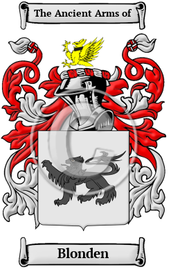 | Blonden History, Family Crest & Coats of Arms Early Origins of the Blonden familyThe surname Blonden was first found in Shropshire where they held a family seat as Lords of the Manor. The Saxon influence of English history diminished after the Battle of Hastings in 1066. The language of the courts was French for the next three centuries and the Norman ambience prevailed. But Saxon surnames survived and the family name was first referenced in the 13th century when they held estates in that shire. Early History of the Blonden familyThis web page shows only a small excerpt of our Blonden research. Another 130 words (9 lines of text) covering the years 1172, 1241, 1396, 1455, 1472, 1487, 1510, 1600, 1695, 1718, 1752, 1766, 1783 and 1982 are included under the topic Early Blonden History in all our PDF Extended History products and printed products wherever possible. Blonden Spelling VariationsUntil quite recently, the English language has lacked a definite system of spelling rules. Consequently, Anglo-Saxon surnames are characterized by a multitude of spelling variations. Changes in Anglo-Saxon names were influenced by the evolution of the English language, as it incorporated elements of French, Latin, and other languages. Although Medieval scribes and church officials recorded names as they sounded, so it is common to find one person referred to by several different spellings of his surname, even the most literate people varied the spelling of their own names. Variations of the name Blonden include Blunden, Blundin, Blundon, Blonden, Blondin and many more. Early Notables of the Blonden familyMore information is included under the topic Early Blonden Notables in all our PDF Extended History products and printed products wherever possible. Migration of the Blonden family to IrelandSome of the Blonden family moved to Ireland, but this topic is not covered in this excerpt. Another 118 words (8 lines of text) about their life in Ireland is included in all our PDF Extended History products and printed products wherever possible. Migration of the Blonden familySearching for a better life, many English families migrated to British colonies. Unfortunately, the majority of them traveled under extremely harsh conditions: overcrowding on the ships caused the majority of the immigrants to arrive diseased, famished, and destitute from the long journey across the ocean. For those families that arrived safely, modest prosperity was attainable, and many went on to make invaluable contributions to the development of the cultures of the new colonies. Research into the origins of individual families in North America revealed records of the immigration of a number of people bearing the name Blonden or a variant listed above: Eliza Blunden, who landed in Virginia in 1705; John Blunden, who arrived in Allegany (Allegheny) County, Pa in 1823; Edward Blunden, aged 28, arrived in Pennsylvania in 1838.