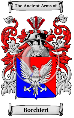 | Bocchieri History, Family Crest & Coats of Arms Etymology of BocchieriWhat does the name Bocchieri mean? From the ancient and picturesque Italian region of Venice emerged a variety of distinguished names, including the notable surname Bocchieri. Although people were originally known only by a single name, it became necessary for people to adopt a second name to identify themselves as populations grew and travel became more frequent. The process of adopting fixed hereditary surnames was not complete until the modern era, but the use of hereditary family names in Italy began in the 10th and 11th centuries. Italian hereditary surnames were developed according to fairly general principles and they are characterized by a profusion of derivatives coined from given names. Although the most traditional type of family name found in the region of Venice is the patronymic surname, which is derived from the father's given name, local surnames are also found. Local names, which are the least frequent of the major types of surnames found in Italy, are derived from a place-name where the original bearer once resided or held land. Often Italian local surnames bore the prefix "di," which signifies emigration from one place to another, but does not necessarily denote nobility. The Bocchieri family lived in the city of Venice, where the Bocho family first settled in 804. Early Origins of the Bocchieri familyThe surname Bocchieri was first found in the city of Venice, where the Bocho family first settled in the year 804. Early History of the Bocchieri familyThis web page shows only a small excerpt of our Bocchieri research. Another 105 words (8 lines of text) covering the years 1250, 1300, 1342, 1360, 1390, 1425, 1436, 1488, 1550, 1562, 1610, 1659, 1700, 1742, 1750 and 1800 are included under the topic Early Bocchieri History in all our PDF Extended History products and printed products wherever possible. Bocchieri Spelling VariationsItalian surnames come in far more variations than the names of most other nationalities. Regional traditions and dialects are a decisive factor in this characteristic. For example, northern names tend to end in "o", while southern in "i". Also important, but not unique to Italy, was the fact that before dictionaries and the printing press most scribes simply spelled words according to their sounds. The predictable result was an enormous number of spelling variations. The recorded spellings of Bocchieri include Bocca, Bocchi, Bucca, Bucchi, Bucco, Bocchetta, Bocchetto, Bocchetti, Bocchino, Bocchini, Boccucci, Boccuzzi, Boccoli, Boccotti, Boccone, Bocconi, Boccaccia, Boccaccio, Boccacci, Boccaccino, Boccaccini, Boccassino, Boccassini, Boccasino, Boccasini, Boccasile, Boccacciaro, Boccacciari, Boccagna, Bocchieri, Boccherini, Boccosi, Boccati, Boccasi, Boccuto, Boccuti, Buccarello, Buccarelli, Buccella, Buccolini, Boccole, BoChina, Bocho, Bocchiardo, Bocchiardi, Boccetta, Boccella and many more. Early Notables of the Bocchieri familyNicolo Boccasino of Treviso, who was made Pope in 1300 and given the new name Benedetto XI; Federico Boccaccio, Giovanni's brother, was priest of the Florentine Republic in 1342, and after him seven other members of the Boccaccio family held this position; Dorotea Bucca (1360-1436) (also Dorotea Bocchi) was an Italian physician, Chair of Medicine and Philosophy at the University of Bologna for over forty years from 1390; Domenico Bocchi was born in Parma in 1425, and was very involved with the Catholic Church; the Bocchiardi family of Pinerolo, counts, were important members of the community and their names were inscribed... Another 144 words (10 lines of text) are included under the topic Early Bocchieri Notables in all our PDF Extended History products and printed products wherever possible. Migration of the Bocchieri familyEarly North American immigration records have revealed a number of people bearing the name Bocchieri or a variant listed above: Anna Buchi, who arrived with her husband and 6 children in Philadelphia, Pennsylvania, in 1743; Lorenzo Boccaccio, aged 21, who arrived at Ellis Island from Pastorano, Italy, in 1920.