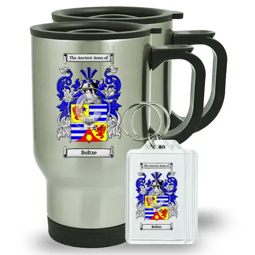 Pair of Travel Mugs and pair of Keychains
