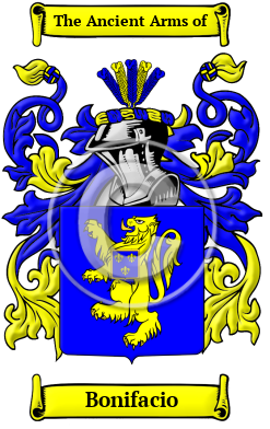| Bonifacio History, Family Crest & Coats of Arms Etymology of BonifacioWhat does the name Bonifacio mean? The distinguished surname Bonifacio can be traced back to the ancient and beautiful region of Sicily, which is located off Southwestern Italy and incorporates the island of Sicily itself, the area of Naples, and the southern part of the Italian peninsula. Although people were originally known only by a single name, it became necessary for people to adopt a second name to identify themselves as populations grew and travel became more frequent. The process of adopting fixed hereditary surnames was not complete until the modern era, but the use of hereditary family names in Italy began in the 10th and 11th centuries. Italian hereditary surnames were developed according to fairly general principles and they were characterized by a profusion of derivatives coined from given names. The most common type of family name found in the region of Sicily is the patronymic surname, which is derived from the father's given name. During the Middle Ages, Italians adopted the patronymic system of name-making because it perfectly complemented the prevailing Feudal System. In Italy the popularity of patronymic type of surname is also due to the fact that during the Christian era, people often named their children after saints and biblical figures. The surname Bonifacio was derived from the baptismal name which means the "good, faithful man." As the naming tradition grew in Europe baptismal names began to be introduced in many countries. Baptismal names were sometimes given in honor of Christian saints and other biblical figures. There are very few Christian countries in Europe that did not adopt surnames from these religious figures. Early Origins of the Bonifacio familyThe surname Bonifacio was first found in the city of Messina, where early records show Matteo Bonifacio was a lawyer, a judge and was Baron of Casale. His brother Nicolo Bonifacio was senator of Messina around 1450. Early History of the Bonifacio familyThis web page shows only a small excerpt of our Bonifacio research. The years 1465, 1517, 1535 and 1547 are included under the topic Early Bonifacio History in all our PDF Extended History products and printed products wherever possible. Bonifacio Spelling VariationsItalian surnames have a surprising number of forms in comparison with other European surnames because they reflect the regional variations and the many dialects of the Italian language, each of which has its distinctive features. For example, in Northern Italy the most standard Italian surname suffix is "I", whereas in Southern Italy the most typical surname suffix is "O". Sardinian is very different from other forms of Italian and in fact, it is considered to be its own distinct language. Additionally, spelling changes frequently occurred because medieval scribes, church officials, and the bearers of names, spelled names as they sounded rather than according to any specific spelling rules. As a consequence of the major changes in the Italian language and in the local spellings of Italian surnames that occurred over the course of history, there are numerous variations for the surname Bonifacio. These spelling variations include Bonifaci, Bonifacio, Bonifacci, Bonifazio, Bonifazi, Bonifazzi, Bonifati, Bonifacino, Bonfatti and many more. Early Notables of the Bonifacio family- Roberto Bonifacio, a castleowner and member of the nobility in Naples around 1465