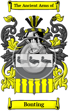 The surname Bonting was first found in Prussia, where the name Bunting contributed greatly to the development of an emerging nation, and which would later play a large role in the tribal and national conflicts of the area. Over time, the family branched into many houses where family members continued to play a significant role in the local social and political affairs.