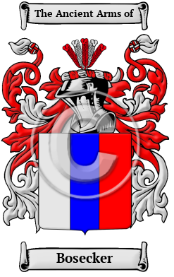 Germany Etymology of BoseckerWhat does the name Bosecker mean? The German state of Bavaria is the ancestral home of the Bosecker family. Bosecker is a local name, first used as a surname for someone who lived in Nuremberg, in the Bavarian part of Western Germany. The prestigious Bosecker family played an integral part in the social, economic and political development in the Nuremberg region. In medieval times, when land proprietorship and management were the sole source of wealth and power, the Bosecker family became members of the gentry. They possessed vast estates and enjoyed the splendors of the feudal court. Early Origins of the Bosecker familyThe surname Bosecker was first found in Nuremberg, where the name Bossecker emerged in mediaeval times as one of the notable families of the region. From the 13th century on, the surname was identified with the great social and economic evolution which made this territory a landmark contributor to the development of the nation. Early History of the Bosecker familyThis web page shows only a small excerpt of our Bosecker research. Another 70 words (5 lines of text) are included under the topic Early Bosecker History in all our PDF Extended History products and printed products wherever possible. Bosecker Spelling VariationsIn the medieval era, many different cultural groups lived in the German states. There are thus many regional variations of German surnames from that era. Westphalians spoke Low German, which is similar to modern Dutch. Many German names carry suffixes that identify where they came from. Others have phrases attached that identify something about the original bearer. Other variations in German names resulted from the fact that medieval scribes worked without the aid of any spelling rules. The spelling variations of the name Bosecker include Bossecker, Bosecker, Bossecher, Bossekker, Bosseker, Bosekker, Boseker, Bosseck, Bosaker, Bosacker, Bossaker, Bossicher, Boseckel, Boseckell, Boseckele, Bossechel, Bosecken, Bossecken, Bossekken and many more. Early Notables of the Bosecker familyMore information is included under the topic Early Bosecker Notables in all our PDF Extended History products and printed products wherever possible. Migration of the Bosecker familyEuropean migration to North America began in the mid-17th century and continued unabated until the mid-20th. Many Bavarians made the long trip to escape poverty or persecution based on their religious beliefs. The chance for tenant farmers to own their own land was also a major drawing card. They settled all across the United States in Pennsylvania, Texas, New York, Illinois, and California. Many came to Canada also, settling in Ontario and the prairie provinces. Analysis of immigration records has shown some of the first Boseckers to arrive in North America, and among them were: Edward Bosaker who arrived in Virginia in 1636; Jacob Bossaker who arrived in Pennsylvania in 1732; Herman M. Bosseck settled in Philadelphia in 1804; Auguste Bossicher, Marie Bossicher, Otto Bossicher, and Paul Bossicher, all of whom arrived in New York City in 1848..