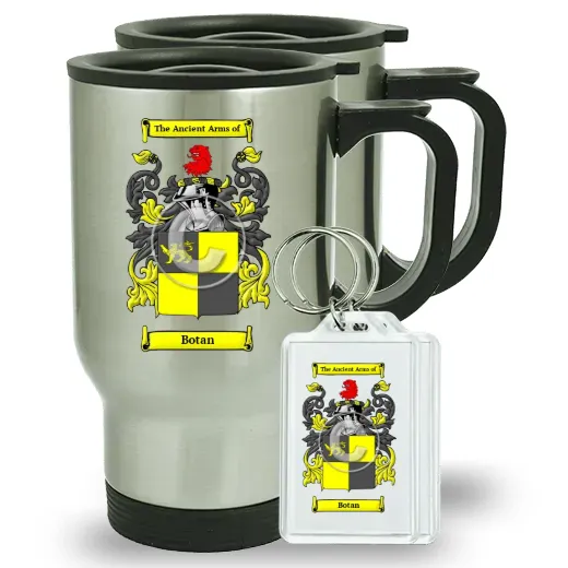 Pair of Travel Mugs and pair of Keychains