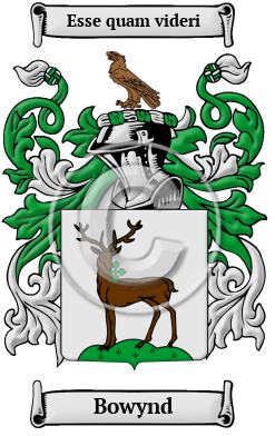 | Bowynd History, Family Crest & Coats of Arms Etymology of BowyndWhat does the name Bowynd mean? From the Celtic land of Wales came the name of Bowynd. The Welsh name Bowynd is a patronymic surname created from the Welsh personal name Owen, or Owein. The surname Bowynd was originally ab-Owen: the distinctive Welsh patronymic prefix "ab" or "ap," means "son of," but the prefix has been assimilated into the surname over the course of time. 1 Early Origins of the Bowynd familyThe surname Bowynd was first found in Pembrokeshire (Welsh: Sir Benfro), a county in south-west Wales, anciently part of the Welsh kingdom of Deheubarth. However, the family are also numerous in Shropshire. 2 Early census records for Wales are rare so we should not be surprised to find that one of the first records was found as late as 1487, where Lewis ap-Owen, was listed in County of Cardigan. 1 Early History of the Bowynd familyThis web page shows only a small excerpt of our Bowynd research. Another 64 words (5 lines of text) covering the years 1575, 1590, 1624, 1704, 1761 and 1797 are included under the topic Early Bowynd History in all our PDF Extended History products and printed products wherever possible. Bowynd Spelling VariationsWelsh surnames are relatively few in number, but they have an inordinately large number of spelling variations. There are many factors that explain the preponderance of Welsh variants, but the earliest is found during the Middle Ages when Welsh surnames came into use. Scribes and church officials recorded names as they sounded, which often resulted in a single person's name being inconsistently recorded over his lifetime. The transliteration of Welsh names into English also accounts for many of the spelling variations: the unique Brythonic Celtic language of the Welsh had many sounds the English language was incapable of accurately reproducing. It was also common for members of a same surname to change their names slightly, in order to signify a branch loyalty within the family, a religious adherence, or even patriotic affiliations. For all of these reasons, the many spelling variations of particular Welsh names are very important. The surname Bowynd has occasionally been spelled Bowen, Bowne, Bowan, Bowin, Bowene, Bowane and many more. Early Notables of the Bowynd familyRobert Ap John Ap Thomas Ap Owein, son of the Lord of Ynysdderne; and Richard Bowen (1761-1797) was a British naval commander. He died during the failed storming of Santa Cruz de Tenerife as he captained HMS Terpsichore. Because of the failure, a memorial to him to be erected in Westminster Abbey was denied. He appears in the Horatio Hornblower books as Captain Sir Richard Bowen. On the... Another 67 words (5 lines of text) are included under the topic Early Bowynd Notables in all our PDF Extended History products and printed products wherever possible. Migration of the Bowynd family to IrelandSome of the Bowynd family moved to Ireland, but this topic is not covered in this excerpt. Another 58 words (4 lines of text) about their life in Ireland is included in all our PDF Extended History products and printed products wherever possible. Migration of the Bowynd familyIn the 1800s and 1900s, many Welsh families left for North America, in search of land, work, and freedom. Those who made the trip successfully helped contribute to the growth of industry, commerce, and the cultural heritage of both Canada and the United States. In the immigration and passenger lists were a number of people bearing the name Bowynd Arthur Bowen who settled in Virginia in 1660; another Arthur Bowen settled in Montserrat in 1665; Bridget Bowen settled in Barbados in 1670; James Bowen settled in Maryland in 1774.