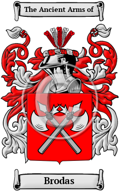 The surname Brodas was first found in Polesie, the largest province of Poland. It is inhabited by Ruthenians, called Polesians, of Ukrainian descent. The main towns are those of Brest Litovsk, Pinsk, Kobryn, Kamenets, Litovsk, and Luninets. It was in this province that the renowned Radziwills and Sapiehas held their vast estates. Wolczyn was the seat of the Czartoryski family. The Brodas surname became noted for its many branches in the region, each house acquiring a status and influence which was envied by the princes of the region. In their later history the name became a power unto themselves and were elevated to the ranks of nobility as they grew into this most influential family.