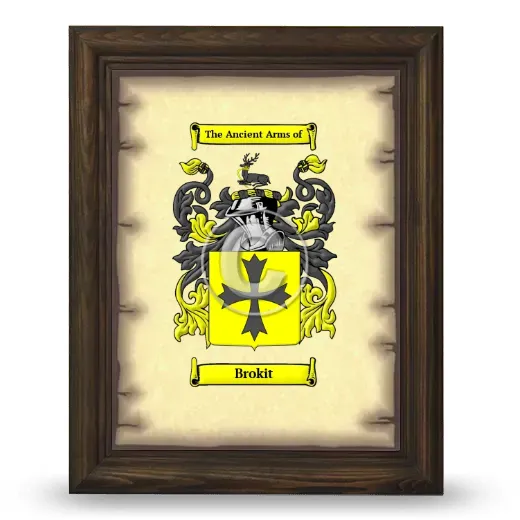 A classic solid wood brown frame with a Coat of Arms and Family Crest most commonly associated with your family's surname. Includes family crest and motto where available!