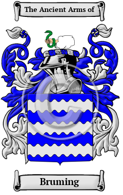 | Bruming History, Family Crest & Coats of Arms Etymology of BrumingWhat does the name Bruming mean? The ancient Anglo-Saxon culture once found in Britain is the soil from which the many generations of the Bruming family have grown. The name Bruming was given to a member of the family who was a person with brown hair or a dark complexion. The surname Bruming is derived from the Old English word bruning, which was in common usage until the 14th century. 1 This word is itself a derivative of the word brun, which means brown. The name was in usage as a personal name as early as 1086, when Bruning de Cestretona was recorded as a holding lands in Cambridgeshire. 2 Early Origins of the Bruming familyThe surname Bruming was first found in Cambridgeshire but by the time of the Hundredorum Rolls of 1273, the name had scattered throughout most of ancient Britain. By example, that rolls listed Henry Brunwyne, Staffordshire; John Brunwyn, Suffolk; Richard Brunwyn, Lincolnshire; Avice Bruning, Cambridgeshire; John Bruning, Norfolk; Roger Bruning, London; and Ivo Brunig, Huntingdonshire. 3 Kirby's Quest listed the name as a forename and a surname: Brounyng le Fox, Somerset, 1 Edward I; and Brounyng Bycheheye, Somerset, 1 Edward I (during the first year of King Edward I's reign.) 4 "Browning is an old and often distinguished county name: there was an ancient family of this name at Cowley, [in Oxfordshire] where they long resided." 5 As time moved on, spellings changed. The Yorkshire Poll Tax Rolls of 1379 included Agnes Brownyng, a spelling closer to the spellings used today. 3 A little further to the north in Scotland, early records there included John Brwnyng, as one of the "burgenses rure manentes" of Aberdeen, 1317, and "Sir John Browning was sheriff there in 1328. Willelmus Bronnyng in the parish of Fyvy was excommunicated in 1382. " 6 Early History of the Bruming familyThis web page shows only a small excerpt of our Bruming research. Another 199 words (14 lines of text) covering the years 1273, 1291, 1328, 1382, 1580, 1584, 1634, 1639, 1647, 1658, 1664, 1667 and 1682 are included under the topic Early Bruming History in all our PDF Extended History products and printed products wherever possible. Bruming Spelling VariationsSound was what guided spelling in the essentially pre-literate Middle Ages, so one person's name was often recorded under several variations during a single lifetime. Also, before the advent of the printing press and the first dictionaries, the English language was not standardized. Therefore, spelling variations were common, even among the names of the most literate people. Known variations of the Bruming family name include Browning, Brownyng, Bruning, Brownigg, Brownygg and many more. Early Notables of the Bruming familyJohn Browning (fl. 1584), English divine, matriculated as a sizar at Trinity College, Cambridge, on 14 Nov. 1658. On 8 July 1580 Browning was created D.D. at Oxford.