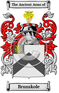 The surname Brunskole was first found in Durham where they held a family seat from very ancient times, some say well before the Norman Conquest and the arrival of Duke William at Hastings in 1066 A.D.