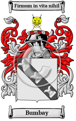 | Bumbay History, Family Crest & Coats of Arms Etymology of BumbayWhat does the name Bumbay mean? When the ancestors of the Bumbay family emigrated to England following the Norman Conquest in 1066 they brought their family name with them. They lived in Cheshire, where they were located since the early Middle Ages. The family name is derived from the area Bunbury, near Nantwich in this shire. The name Bunbury derives from the Old English personal name Buna, and the burh, which means "fortress." Early Origins of the Bumbay familyThe surname Bumbay was first found in Cheshire at Bunbury, a village and civil parish now in the unitary authority of Cheshire East. The village dates back to the Domesday Book of 1086 where it was first listed as Boleberie 1 and literally meant "stronghold of a man called Buna," from the Old English personal name + "burh." 2 The family of "great antiquity, descended from Henry de Boneberi, in the time of Stephen, a younger brother of the House of St. Pierre in Normandy. William de Boneberi, son of Henry, was Lord of Beneberi in the reign of Richard I." 3 As a cadet of the Norman house of St. Pierre who accompanied Hugh Lupus, Earl of Chester, at the Conquest, they obtained from him the manor of Bunbury. The family has held estates in the area for many centuries. By example, the extra-parochial liberty Great Stanney in Cheshire was held by the family since ancient times. " The ancient mansion here of the family of Bunbury, called Rake Hall, has been repaired by its present owner, Sir Henry Bunbury, Bart.; several farm-buildings have been erected, and the roads much improved." 4 Nearby, Little Stanney was also property of Sir Henry Bunbury. A most benevolent family, Sir Thomas Bunbury, founded a free school with £5 per annum. Early History of the Bumbay familyThis web page shows only a small excerpt of our Bumbay research. Another 105 words (8 lines of text) covering the years 1657, 1673, 1674, 1676, 1682, 1687, 1733, 1781, 1787, 1797, 1802, 1822 and 1851 are included under the topic Early Bumbay History in all our PDF Extended History products and printed products wherever possible. Bumbay Spelling VariationsThe English language only became standardized in the last few centuries. For that reason, spelling variations are common among many Anglo-Norman names. The shape of the English language was frequently changed with the introduction of elements of Norman French, Latin, and other European languages; even the spelling of literate people's names were subsequently modified. Bumbay has been recorded under many different variations, including Bunbury, Baunbury, Bunby, Bunbry, Bunberry and others. Early Notables of the Bumbay familyAnother 45 words (3 lines of text) are included under the topic Early Bumbay Notables in all our PDF Extended History products and printed products wherever possible. Migration of the Bumbay family to IrelandSome of the Bumbay family moved to Ireland, but this topic is not covered in this excerpt. Another 92 words (7 lines of text) about their life in Ireland is included in all our PDF Extended History products and printed products wherever possible.