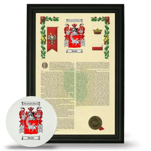• Our most popular product, the Armorial, in a wooden Black Frame with an 8" Round Mouse Pad
