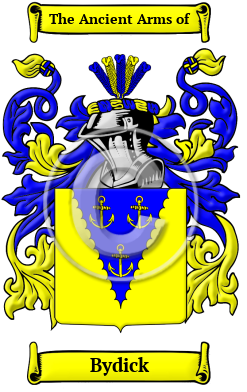 England Early Origins of the Bydick familyThe surname Bydick was first found in Durham at either North Bidick, a hamlet, partly in the parish of Washington, and partly in that of Whitburn, or South Bidick, a township, in the parish of Houghton-le-Spring, union of Chester-le-Street. Both place names literally mean "dweller by the ditch," from the Old English words "bi + "dic." 1 Biddick Hall is a small privately owned 18th-century country mansion at Bournmoor, County Durham, near the City of Sunderland and Chester-le-Street. Another Biddick Hall is found in the town of South Shields, in Tyne and Wear, England. The first on record was Adinet de Bidyk who was listed here in 1276. Years later, William de Bydik was listed in the the Assize Rolls of Northumberland in 1305 and John Bidyk was found in the Subsidy Rolls for Dorset in 1332. 1 Early History of the Bydick familyThis web page shows only a small excerpt of our Bydick research. Another 121 words (9 lines of text) covering the years 1332, 1510, 1540 and 1600 are included under the topic Early Bydick History in all our PDF Extended History products and printed products wherever possible. Bydick Spelling VariationsEndless spelling variations are a prevailing characteristic of Norman surnames. Old and Middle English lacked any definite spelling rules, and the introduction of Norman French added an unfamiliar ingredient to the English linguistic stew. French and Latin, the languages of the court, also influenced spellings. Finally, Medieval scribes generally spelled words according to how they sounded, so one person was often referred to by different spellings in different documents. The name has been spelled Biddick, Bidick, Bidock, Biddock, Byddick, Bydick and others. Early Notables of the Bydick familyMore information is included under the topic Early Bydick Notables in all our PDF Extended History products and printed products wherever possible. Migration of the Bydick familyTo escape the political and religious persecution within England at the time, many English families left for the various British colonies abroad. The voyage was extremely difficult, though, and the cramped, dank ships caused many to arrive in the New World diseased and starving. But for those who made it, the trip was most often worth it. Many of the families who arrived went on to make valuable contributions to the emerging nations of Canada and the United States. An inquiry into the early roots of North American families reveals a number of immigrants bearing the name Bydick or a variant listed above: Alfred Cyril Biddick, aged 23, who arrived at Ellis Island from Somerset, England, in 1909; Edith Biddick, aged 33, who arrived at Ellis Island from Cornwall, England, in 1913.