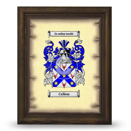 A classic solid wood brown frame with a Coat of Arms and Family Crest most commonly associated with your family's surname. Includes family crest and motto where available!