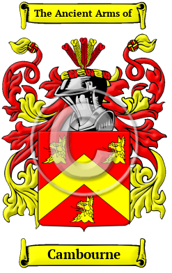 England Early Origins and Etymology of CambourneThe surname Cambourne was first found in Cornwall at Camborne (Cornish: Kammbronn, for 'Crooked Hill') 1 a town and civil parish where they held a family seat as Lords of the Manor of Deverell. The town dates back to 1182 when it was first listed as Camberon. 1 "This parish, which lies in the deanery and in the east division of the hundred of Penwith, is about four miles west from Redruth. Its name, which is neither disgraced nor dignified with the appellation of saint, is said to have been derived from a famous well that was formerly in high repute in this district, known by the name of Cam-burne Well. To this sacred fountain many of the young and aged formerly resorted, to acquire sanctity from its celebrated virtues. But its reputation has been long on the decline, and its magical excellencies are only known from the tales of tradition, or the records of superstition." 2 Early History of the Cambourne familyThis web page shows only a small excerpt of our Cambourne research. Another 148 words (11 lines of text) covering the years 1079, 1142, 1149, 1162, 1510, 1600 and 1903 are included under the topic Early Cambourne History in all our PDF Extended History products and printed products wherever possible. Cambourne Spelling VariationsCornish surnames are characterized by a multitude of spelling variations. The frequent changes in surnames are due to the fact that the Old and Middle English languages lacked definite spelling rules. The official court languages, which were Latin and French, were also influential on the spelling of a surname. Since the spelling of surnames was rarely consistent in medieval times, and scribes and church officials recorded names as they sounded rather than adhering to any specific spelling rules, it was common to find the same individual referred to with different spellings of their surname in the ancient chronicles. Moreover, a large number of foreign names were brought into England, which accelerated and accentuated the alterations to the spelling of various surnames. Lastly, spelling variations often resulted from the linguistic differences between the people of Cornwall and the rest of England. The Cornish spoke a unique Brythonic Celtic language which was first recorded in written documents during the 10th century. However, they became increasingly Anglicized, and Cornish became extinct as a spoken language in 1777, although it has been revived by Cornish patriots in the modern era. The name has been spelled Camborn, Camborne, Cambourn, Cambourne, Camburn, Cambyrne, Cambon, Cambern and many more. Early Notables of the Cambourne familyMore information is included under the topic Early Cambourne Notables in all our PDF Extended History products and printed products wherever possible. Migration of the Cambourne familyA search of the immigration and passenger lists has shown a number of people bearing the name Cambourne: the name represented in many forms and recorded from the mid 17th century in the great migration from Europe. Migrants settled in the eastern seaboard from Newfoundland, to Maine, to Virginia, the Carolinas, and to the islands..