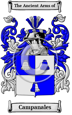 | Campanales History, Family Crest & Coats of Arms Etymology of CampanalesWhat does the name Campanales mean? Venice, one of the oldest and most beautiful island regions of Italy, is the esteemed birthplace of numerous prominent families, including the family that bears the surname Campanales. Although people were originally known only by a single name, it became necessary for people to adopt a second name to identify themselves as populations grew and travel became more frequent. The process of adopting fixed hereditary surnames was not complete until the modern era, but the use of hereditary family names in Italy began in the 10th and 11th centuries. Italian hereditary surnames were developed according to fairly general principles and they are characterized by a profusion of derivatives coined from given names. Although the most common type of family name found in Venice is the patronymic surname, which is derived from the father's givenname, names derived from occupations are also found. Occupational surnames, which are less common than other types of surnames in Italy, date back to the feudal era. However, under the Feudal System, occupational names did not become hereditary until the offices themselves became hereditary. It was only after an occupation was inherited by several generations in lineal descent that occupational names came to be applied to entire families, and so became a hereditary surname. The surname Campanales is a common occupational name for a person who worked on church bells. The name literally means "a small church-bell" or "the bell-ringer." Early Origins of the Campanales familyThe surname Campanales was first found in the city of Padua, with earliest records of this lineage dating back to 1081, when Patavino Campanati was a lawyer of the Sacred Palace, or "Sacro Palazzo" in Padua. Early History of the Campanales familyThis web page shows only a small excerpt of our Campanales research. The years 1139, 1161, 1280, 1450, 1475, 1520, 1550, 1620, 1695, 1750, 1751, 1776, 1783, 1786, 1797, 1801, 1818, 1827 and 1830 are included under the topic Early Campanales History in all our PDF Extended History products and printed products wherever possible. Campanales Spelling VariationsThere are many variations of most of those Italian names that originated in the medieval era. Some of these come from regional differences, like the tradition of ending northern names in "o" and southern names in "i". Others come from inaccuracies in the recording process, which were extremely common in the eras before dictionaries standardized spelling. Some of the spelling variations of Campanales are Campana, Campani, Campanelli, Campanio, Campanino, Campanini, Campanale, Campanile, Campanili, Campanato, Campanati, Campanella, Campanazzi, Campanaro, Campanari and many more. Early Notables of the Campanales familythe Campana family of Gorizia, who were Counts; Cino Campana of Osimo was a prominent lawyer and judge; Federico Campana was a castle owner in the area around Ancona; Muzio Campana was a military commander of the troops of the Duke of Urbino; Stefano Campanella was Bishop of Mileto in 1139; Soffrido Campanella was Bishop of Cassano in 1161; Paolo Campanella was Bishop of Pozzuoli around this time; Aldovrandino Campanati was a well known judge in 1280 in Padua; Antonio Campanazzi was a lawyer in 1450 in Bologna; Giovanni Campanella was Bishop of Minervino in 1475.