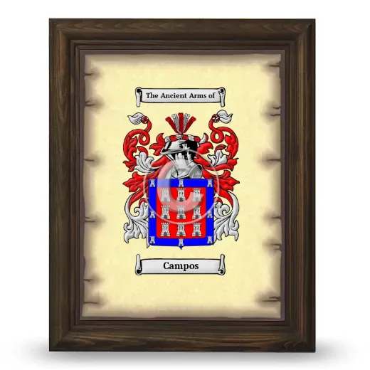 A classic solid wood brown frame with a Coat of Arms and Family Crest most commonly associated with your family's surname. Includes family crest and motto where available!