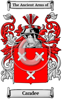 England Early Origins of the Candee familyThe surname Candee was first found in Suffolk where they held a family seat as Lords of the Manor. The family name was first referenced in the year 1327, when John Gameday held estates in the county. The name was originally Gandow. Alternatively, the name could have been Norman in origin and in this case, the name was from Candé, near Blois. "Nicholas Candie occurs in Normandy, 1195" according to the Magni Rotuli Scaccarii Normanniae. 1 Early History of the Candee familyThis web page shows only a small excerpt of our Candee research. Another 75 words (5 lines of text) covering the years 1379, 1455, 1487, 1619, 1661, 1689, 1714 and 1729 are included under the topic Early Candee History in all our PDF Extended History products and printed products wherever possible. Candee Spelling VariationsUntil quite recently, the English language has lacked a definite system of spelling rules. Consequently, Anglo-Saxon surnames are characterized by a multitude of spelling variations. Changes in Anglo-Saxon names were influenced by the evolution of the English language, as it incorporated elements of French, Latin, and other languages. Although Medieval scribes and church officials recorded names as they sounded, so it is common to find one person referred to by several different spellings of his surname, even the most literate people varied the spelling of their own names. Variations of the name Candee include Gandy, Gandey, Gameday, Candy, Candey, Ganty, Canty and many more. Early Notables of the Candee familyJames Gandy (1619-1689), one of the earliest native English portrait-painter from Exeter.He is stated to have been a pupil of Vandyck, and to have acquired to some degree the style of that master. "He has even been supposed to have assisted Vandyck by painting the drapery in his pictures. In 1661 he was taken to Ireland by his patron, the Duke of Ormonde, and remained there until his death in 1689." 2