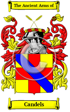 | Candels History, Family Crest & Coats of Arms Etymology of CandelsWhat does the name Candels mean? Candels is an ancient Norman name that arrived in England after the Norman Conquest of 1066. The name Candels comes from the Norman name Cundel which arrived with the Norman Conquest of England in 1066. The parish of Cundall, comprising the townships of Cundall with Leckby, and Norton-le-Clay, in the wapentake of Hallikeld, and the township of Fawdington in that of Birdforth, North Riding of Yorkshire is home to the family. 1 Early Origins of the Candels familyThe surname Candels was first found in Yorkshire where they held a family seat in the North Riding as Lords of the Manor of Cundall, originally pre Conquest, Cundel, at the time of the Norman Conquest of England by Duke William of Normandy in 1066. 2 In the Domesday Book survey taken in 1086 the village of Cundall was held by Alured from the Count of Mortain. Conjecturally the Cundalls are descended from this Norman noble. 3 Early English rolls provide us a glimpse of the spelling variations used through Medieval times. Today we typically need to look beyond the spellings of these entries and concentrate on a phonetic appreciation of the names. Ralph de Cundale was listed in the Pipe Rolls of Yorkshire in 1176 and later, Richard de Kundale was recorded in the Subsidy Rolls for Yorkshire in 1301. 4 The Yorkshire Poll Tax Rolls of 1379 included an entry for Willelmus de Cundall as holding lands there at that time. 5 "The Cundalls, or Cundells, or Cundills, derive their name from a North Riding parish. During the 17th and 18th centuries the Cundalls were well known in Ripon, and frequently filled the office of mayor." 6 Early History of the Candels familyThis web page shows only a small excerpt of our Candels research. Another 27 words (2 lines of text) covering the years 1623, 1627, 1757, 1804, 1808, 1810, 1811, 1814 and 1824 are included under the topic Early Candels History in all our PDF Extended History products and printed products wherever possible. Candels Spelling VariationsA multitude of spelling variations characterize Norman surnames. Many variations occurred because Old and Middle English lacked any definite spelling rules. The introduction of Norman French to England also had a pronounced effect, as did the court languages of Latin and French. Therefore, one person was often referred to by several different spellings in a single lifetime. The various spellings include Cundall, Cundal, Cundell, Cundel, Cundil, Cundill, Condall, Condal, Condel and many more. Early Notables of the Candels familyHenry Condell (died 1627), an English actor in the King's Men. With John Heminges, he was instrumental in preparing the First Folio, the collected plays of Shakespeare, published in 1623. 7