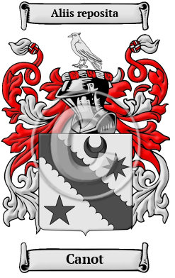 | Canot History, Family Crest & Coats of Arms Etymology of CanotWhat does the name Canot mean? The distinguished surname Canot emerged among the industrious people of Flanders, which was an important trading partner and political ally of Britain during the Middle Ages. As a result of the frequent commercial intercourse between the Flemish and English nations, many Flemish migrants settled in Britain. In early times, people were known by only a single name. However, as the population grew and people traveled further afield, it became increasingly necessary to assume an additional name to differentiate between bearers of the same personal name. Occupational surnames were derived from the common trades of the medieval era. The surname Canot is an occupational name for a precentor, the leader of the singing of hymns in a cathedral or monastery. The surname is derived from the Old Norman French word cant, which in turn comes from the Old French word chant, which means singing or song. 1 Early Origins of the Canot familyThe surname Canot was first found in Fife where they held a family seat from very ancient times, of Flemish origin and arrived in Scotland about the year 1200 from Flanders. One of the earliest records of the family was William Cant and Sithow Cant who were tenants under the Douglases in Telny in the barony of Aberdoure, Fife, 1376. "A writer in the Scottish antiquary (IV) says that the name occurs in the Exchequer Rolls in the fifteenth century, and that the family, by trade dealers in cloth, supplied the king's household. They were evidently, he says, Flemings, and are mentioned in connection with Flanders. They obtained land at Masterton near Dunfermline, which their descendants of the name still possess. A family of the name early attained prominence in Edinburgh, where the name was common in the fifteenth and sixteenth centuries. Adam Cant was bailie there, 1403, and James Cant was chosen dean of guild, 1413." 2 Early History of the Canot familyThis web page shows only a small excerpt of our Canot research. Another 180 words (13 lines of text) covering the years 1230, 1426, 1430, 1433, 1461, 1473, 1485, 1493, 1590, 1651, 1663, 1675, 1685, 1700, 1724, 1728 and 1804 are included under the topic Early Canot History in all our PDF Extended History products and printed products wherever possible. Canot Spelling VariationsFlemish surnames are characterized by a large number of spelling variations. One reason for this is that medieval English lacked definite spelling rules. The spellings of surnames were also influenced by the official court languages, which were French and Latin. Names were rarely spelled consistently in medieval times. Scribes and church officials recorded names as they sounded, rather than adhering to specific spelling rules, and people often had their names registered in several different forms throughout their lives. One of the greatest reasons for change is the linguistic uniqueness of the Flemish settlers in England, who spoke a language closely related to Dutch. The pronunciation and spelling of Flemish names were often altered to suit the tastes of English-speaking people. In many cases, the first, final, or middle syllables of surnames were eliminated. The name has been spelled Cant, Kant, Cante and others. Early Notables of the Canot familyAndrew Cant (1590-1663), Scottish Presbyterian minister and leader of the Scottish Covenanters, Rector of King's College, Aberdeen, (1651 - ?); and his son, Andrew Cant (died... Another 26 words (2 lines of text) are included under the topic Early Canot Notables in all our PDF Extended History products and printed products wherever possible. Migration of the Canot familyCanots were some of the first of the immigrants to arrive in North America: Catherine Cant who settled in Philadelphia, Pennsylvania in 1775; Robert Cant settled in Barbados in 1634; William Cant settled in Boston Massachusetts in 1820.