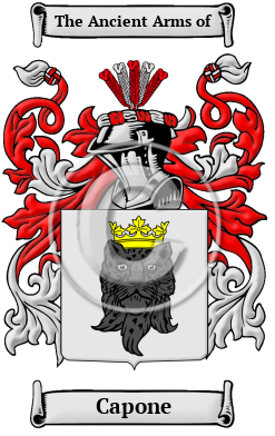 | Capone History, Family Crest & Coats of Arms Early Origins of the Capone familyThe surname Capone was first found in Naples, (Italian: Napoli, Latin: Neapolis) former capital of the Kingdom of the Two Sicilies in southern Italy, and chief city of the province of Naples. It shares with Instanbul the claim to be the most beautiful city in Europe. Naples has 237 Churches and 57 Chapels. The National Museum and other galleries contain riches in art and artifacts. In those ancient times only persons of rank, the podesta, clergy, city officials, army officers, artists, landowners were entered into the records. Early History of the Capone familyThis web page shows only a small excerpt of our Capone research. Another 136 words (10 lines of text) covering the years 1550, 1560, 1582, 1621, 1629, 1645, 1649, 1659, 1774 and 1810 are included under the topic Early Capone History in all our PDF Extended History products and printed products wherever possible. Capone Spelling VariationsSpelling variations of this family name include: Caputa, Caputo, Caputi, Capone, Capo, Caponi, Caponio, Capoccia, Capozzolo, Capocetti, Caponetti and many more. Early Notables of the Capone familyManilio Caputo, a famous poet in 1550; Luigi Capponi (1582-1659), Archbishop of Ravenna (1621-1645), Cardinal-Priest of San Lorenzo in Lucina (1629-1659), Librarian of the Holy Roman Church (1649-1659); Pietro-Paolo Caputo was Governor of Foligno, Imola and Narni around this time; Giovanni Donato Caputo of Lecce was a theologian who dedicated his life to the church in 1560; Nicola Caputo was a lawyer and priest in Naples around 1774; Michele Maria Caputo of Lecce was a priest and a teacher of philosophy and theology in 1810... Another 95 words (7 lines of text) are included under the topic Early Capone Notables in all our PDF Extended History products and printed products wherever possible. Capone Rankingthe United States, the name Capone is the 6,329th most popular surname with an estimated 4,974 people with that name. 1
