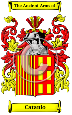 | Catanio History, Family Crest & Coats of Arms Etymology of CatanioWhat does the name Catanio mean? The Catanio family can trace its noble origins to the Italian region of Piedmont. Although people were originally known only by a single name, it became necessary for people to adapt a second name to identify themselves as populations grew and travel became more frequent. The process of adopting fixed hereditary surnames was not complete until the modern era, but the use of hereditary family names in Italy began in the 10th and 11th centuries. Italian hereditary surnames were developed according to fairly general principles and they are characterized by a profusion of derivatives coined from given names. Although the most traditional type of family name found in the region of Piedmont is the patronymic surname, which is derived from the father's given name, local surnames are also found. Local names, which are the least frequent of the major types of surnames found in Italy, are derived from a place-name where the original bearer once resided or held land. Often Italian local surnames bore the prefix "di," which signifies emigration from one place to another, but does not necessarily denote nobility. The family lived in Catani, a province located at the foot of Mount Etna, on the Gulf of Catani. In the 8th century BC, the province of Catani was founded by the Greeks and it became the Athenian base of operations against Syracuse in 432 BC. In the 9th century, the province was taken by the Saracens and then by the Normans in 1090. The Cotone (English: cotton) variant originates in the northern end of the municipal territory of Scansano and Siena in Tuscany. This was home to the famous Maggi di Cotone dynasty who held the Castello di Cotone, the Castello di Montepò, the Castello di Colle Massari, the Castello di Vicarello and the Castello della Sabatina. Early Origins of the Catanio familyThe surname Catanio was first found in the Piedmont and Tuscany areas of Italy. Earliest records date back to the 10th century in the city of Genoa, where members of the family were landowners of Voragine, Mazzone, Faggiolo, and Lemno. The surname was registered around this time in the cities of Pavia, Milan, Rome, Prato, Florence, Bologna, Genoa, and on the island of Sicily. The Cotone branch held the lordship of Cotone, Montorgiali and Matignato, and gave two grand masters of Malta, all before 1464. They resided in supreme magistratures. The family was widespread in Sicily, especially in Palermo where it has at its base an original nickname or trade name formed from the Sicilian cuttuni "cotton." 1 Another branch was originally from France, and transplanted to Messina where in the county of Bavuso, they had established a branch of the family in Palermo, adorned by Philip IV of the title of Prince of Castelnuovo in 1623. 2 Early History of the Catanio familyThis web page shows only a small excerpt of our Catanio research. Another 119 words (8 lines of text) covering the years 1442, 1510, 1554, 1574, 1590, 1600, 1755 and 1770 are included under the topic Early Catanio History in all our PDF Extended History products and printed products wherever possible. Catanio Spelling VariationsItalian surnames come in far more variations than the names of most other nationalities. Regional traditions and dialects are a decisive factor in this characteristic. For example, northern names tend to end in "o", while southern in "i". Also important, but not unique to Italy, was the fact that before dictionaries and the printing press most scribes simply spelled words according to their sounds. The predictable result was an enormous number of spelling variations. The recorded spellings of Catanio include Catani, Catania, Catanese, Cataneo, Catanea, Catanoso, Catanei, Catanio and many more. Early Notables of the Catanio family- Paolo Catania of Monreale, a priest in 1590; Francesco Catanio was a painter in Ferrara in 1600; Francesco Maria Catani was a Florentine painter born in 1755; Luigi Catani of Prato was a famous artist...