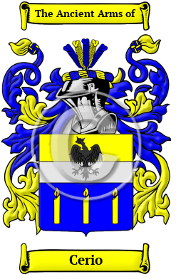 | Cerio History, Family Crest & Coats of Arms Early Origins of the Cerio familyThe surname Cerio was first found in Calabria a territorial district of Italy. Ancient Calabria was in Lecce. Modern Calabria is in the southern extremity of Italy coasting the straits of Messina. Reggio and Messina are the cities of note. This beautiful region produces wine. Olive oil and fruit. Reggio was heavily bombed during WWII because of its strategical link with Sicily. In those ancient times only persons of rank, the podesta, clergy, city officials, army officers, artists, landowners were entered into the records. To be recorded at this time, at the beginning of recorded history, was of itself a great distinction and indicative of noble ancestry. Early History of the Cerio familyThis web page shows only a small excerpt of our Cerio research. Another 99 words (7 lines of text) covering the years 1479, 1591, 1736 and 1800 are included under the topic Early Cerio History in all our PDF Extended History products and printed products wherever possible. Cerio Spelling VariationsSpelling variations of this family name include: Ciralo, Ceraulo, Ceravolo, Ciraola, Ciravolo, Ciaravolo, Ceraulo, Ceravolo, Cerioli and many more. Early Notables of the Cerio familyJohann Heinrich Cario, born at Eckernforde in Holstein, 1736, was instructed by Emmanuel Bach, Telemann, and Schwenke, and became a great trumpet player. He is said to have invented a keyed trumpet which would play in every key, and to have executed a prelude in B minor. He may therefore have been able to execute the trumpet parts in Sebastian Bach's music which are now unplayable. Cario was living in 1800. 1... Another 88 words (6 lines of text) are included under the topic Early Cerio Notables in all our PDF Extended History products and printed products wherever possible.