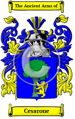 | Cesarone History, Family Crest & Coats of Arms Etymology of CesaroneWhat does the name Cesarone mean? The distinguished surname Cesarone can be traced back to the ancient and beautiful region of Sicily, which is located off Southwestern Italy and incorporates the island of Sicily itself, the area of Naples, and the southern part of the Italian peninsula. Although people were originally known only by a single name, it became necessary for people to adopt a second name to identify themselves as populations grew and travel became more frequent. The process of adopting fixed hereditary surnames was not complete until the modern era, but the use of hereditary family names in Italy began in the 10th and 11th centuries. Italian hereditary surnames were developed according to fairly general principles and they were characterized by a profusion of derivatives coined from given names. The most common type of family name found in the region of Sicily is the patronymic surname, which is derived from the father's given name. During the Middle Ages, Italians adopted the patronymic system of name-making because it perfectly complemented the prevailing Feudal System. In Italy the popularity of patronymic type of surname is also due to the fact that during the Christian era, people often named their children after saints and biblical figures. The surname Cesarone was derived from the given name "Cesare," and originally derived from the famous Roman family name "Caesar." In Classical times, the name "Caesar" was associated by folk etymology with the Latin Caesaries (head of hair). Early Origins of the Cesarone familyThe surname Cesarone was first found in the year 1278, where Nicol Cesareo was listed in the Sicilian city of Messina. Nicol Cesari, was a priest in Rome during the 14th century and worked closely with Pope Martino V. Later, Giulio Cesarini was a listed as a lawyer in Rome around 1400. Early History of the Cesarone familyThis web page shows only a small excerpt of our Cesarone research. The years 1398, 1444, 1466, 1470, 1510, 1542, 1568, 1571, 1600, 1622, 1640, 1650 and 1750 are included under the topic Early Cesarone History in all our PDF Extended History products and printed products wherever possible. Cesarone Spelling VariationsSurnames that originated in Italy are characterized by an enormous number of spelling variations. Some of these are derived from regional traditions and dialects. Northern names, for instance, often end in "o", while southern names tend to end in "i". Other variations come from the fact the medieval scribes tended to spell according to the sound of words, rather than any particular set of rules. The recorded variations of Cesarone include Cesari, Cesare, Cesaro, Cesar, De Cesare, Cesaris, De Cesaris, Di Cesare, Cesarelli, Cesaretti, Cesarini, Cesarino, Cesarìn, Cesarotti, Cesaroni, Cesarone, Cesarano, Cesarato, Cesaratto, Cesariano, Cesareni and many more. Early Notables of the Cesarone familyGiuliano Cesarini was an ecclesiastic in Rome in 1470; Julian Cesarini the Elder (1398-1444), was an Italian cardinal from Rome; his son, Julian Cesarini the Younger (1466-1510) was an Italian Roman Catholic cardinal; Alessandro Cesarini (died 1542), was an Italian cardinal of the Roman Catholic Church and Bishop of Pistoia; Cesare Cesarino of Varese was a prominent architect, military engineer, and painter during the early 16th century;