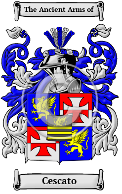 From the ancient and picturesque Italian region of Venice emerged a variety of distinguished names, including the notable surname Cescato. Although people were originally known only by a single name, it became necessary for people to adopt a second name to identify themselves as populations grew and travel became more frequent. The process of adopting fixed hereditary surnames was not complete until the modern era, but the use of hereditary family names in Italy began in the 10th and 11th centuries. Italian hereditary surnames were developed according to fairly general principles and they are characterized by a profusion of derivatives coined from given names. Although the most traditional type of family name found in the region of Venice is the patronymic surname, which is derived from the father's given name, local surnames are also found. Local names, which are the least frequent of the major types of surnames found in Italy, are derived from a place-name where the original bearer once resided or held land. Often Italian local surnames bore the prefix "di," which signifies emigration from one place to another, but does not necessarily denote nobility. The Cescato family lived in any one of a number of cities in Lombardy.