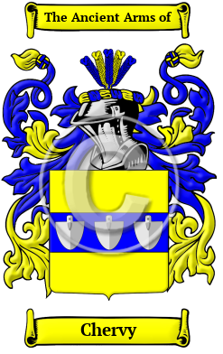 France Early Origins of the Chervy familyThe surname Chervy was first found in Languedoc, where this illustrious family held a family seat since ancient times. This distinguished family were granted noble status in 1460 when Jean de Gervais of Montgrand, from whom seventeen generations originated, carried out an important service to his community. The family formed many alliances with other powerful families and as a result, they prospered and expanded to various provinces. Branching to Poitou, the Gervais of Lafond family was represented since the 13th century in Limousin. To honor their involvement in various regions, the Gervais de Rouville branch were granted the titles of the Lords of Serres, Marouils, Lascours and in 1702, of Rouville. As this ancient family took part in the conflicts of the times, they used their underground cave as a refuge for Protestants and the Gervais of Rouville families followed the Reformation. In 1733, Jacques de Gervais of Rouville obtained recognition of his nobility by the State Council. Due to their great numbers, members of this family were noted in all walks of life, in the military as well as in the civil service. Celebrated members include a Musketeer of the guard of Louis XVIII in 1814, Magistrates, a Dean of the Faculty of Sciences at Montpellier, a State Councillor and Engineers of bridges. Jean Gervais, born in 1621, son of Urbain and Jeanne (née Pebise), travelled from Angers, France to Montreal, Quebec in The Great Recruit of 1653. After his arrival in New France, Jean married Anne Archambault, daughter of Jacques and Françoise (née Toureau), on 3rd February 1654. He worked in Quebec as a baker and a land clearer until his death on 12th March 1690 in Montreal. His wife, Anne, passed away on 30th July 1699. 1 Early History of the Chervy familyThis web page shows only a small excerpt of our Chervy research. Another 131 words (9 lines of text) covering the years 1200, 1307, 1671 and 1744 are included under the topic Early Chervy History in all our PDF Extended History products and printed products wherever possible. Chervy Spelling VariationsSpelling variations of this family name include: Gervais, Gervait, Gervaie, Gerver, Gervé, Gervey, Jervey, Jervais, Jervaie, Chervais, Chervait, Cherver and many more. Early Notables of the Chervy familyCharles-Hubert Gervais (1671-1744), a French composer of the Baroque era. The son of a valet to King Louis XIV's brother, Monsieur, he worked as a musician for the... Another 28 words (2 lines of text) are included under the topic Early Chervy Notables in all our PDF Extended History products and printed products wherever possible. Migration of the Chervy familySome of the first settlers of this family name or some of its variants were: Thomas Gervais settled in Maryland in 1634; Pierre Gervais settled in Louisiana in 1756; Charles Nicholas D. Gervais settled in Philadelphia in 1799; and Henry Gervais settled in Philadelphia in 1860..