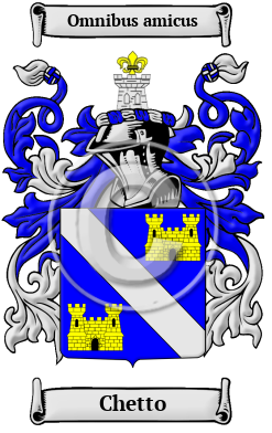 The roots of the name Chetto are found among the Strathclyde-Briton people of the ancient Scottish/English Borderlands. Chetto was originally found in Norfolk, England; or the name may also be from Chetel, an Old Norse and Old English given name.