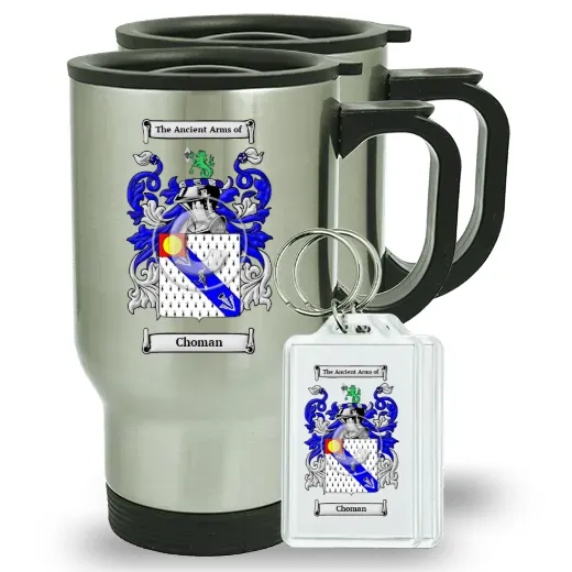 Pair of Travel Mugs and pair of Keychains