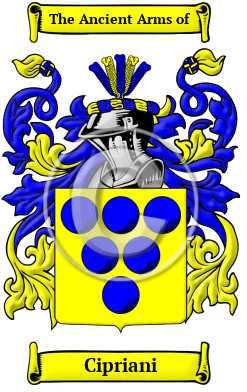 | Cipriani History, Family Crest & Coats of Arms Etymology of CiprianiWhat does the name Cipriani mean? A variety of distinguished and notable names have emerged from the beautiful and historical Italian region of Tuscany, including the notable surname Cipriani. During the Middle Ages, as populations grew and travel between regions became more frequent, the people of Tuscany, who were originally known only by a single name, found it necessary to adopt a second name to identify themselves and their families. This process of adopting fixed hereditary surnames in Italy began in the 10th and 11th centuries, but it was not completed until the modern era. The development of Italian hereditary surnames followed general principles and were characterized by derivatives from one's given name. The patronymic surname, which is derived from the father's given name, was one of the most common name types found in the region of Tuscany. This system of name-making was widely used because it linked well with the existing Feudal System and during the Christian era, many people named their children after saints and biblical figures. The surname Cipriani came from the Greek name kyprios, which literally means Cyprus or the tree island. The name became popular in Italy due to the fame of Saint Cipriani, the Bishop of Cartagine who was martyred in 258. In those early centuries, with the spread of Christianity, parents often named their children after saints in the hope of invoking that particular saint's protection over the child in later years. Early Origins of the Cipriani familyThe surname Cipriani was first found in Florence (Italian: Firenze), where in the 12th century Arrigo Cipriano was a knight of Emperor Corrado registered in Florence. Early History of the Cipriani familyThis web page shows only a small excerpt of our Cipriani research. The years 1660, 1727, 1738, 1754, 1765, 1766, 1770, 1790, 1791 and 1850 are included under the topic Early Cipriani History in all our PDF Extended History products and printed products wherever possible. Cipriani Spelling VariationsItalian surnames have a surprising number of forms in comparison with other European surnames because they reflect the regional variations and the many dialects of the Italian language, each of which has its distinctive features. For example, in Northern Italy the most standard Italian surname suffix is "I", whereas in Southern Italy the most typical surname suffix is "O". Sardinian is very different from other forms of Italian and in fact, it is considered to be its own distinct language. Additionally, spelling changes frequently occurred because medieval scribes, church officials, and the bearers of names, spelled names as they sounded rather than according to any specific spelling rules. As a consequence of the major changes in the Italian language and in the local spellings of Italian surnames that occurred over the course of history, there are numerous variations for the surname Cipriani. These spelling variations include Cipri, Cipro, Cipriani, and Cipriano and others. Early Notables of the Cipriani family- Lamberto Cipriani of Florence, a member of the Ghibelline faction and a pacifist dedicated to ending the fighting between castles in the region during the late 13th century