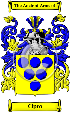 | Cipro History, Family Crest & Coats of Arms Etymology of CiproWhat does the name Cipro mean? A variety of distinguished and notable names have emerged from the beautiful and historical Italian region of Tuscany, including the notable surname Cipro. During the Middle Ages, as populations grew and travel between regions became more frequent, the people of Tuscany, who were originally known only by a single name, found it necessary to adopt a second name to identify themselves and their families. This process of adopting fixed hereditary surnames in Italy began in the 10th and 11th centuries, but it was not completed until the modern era. The development of Italian hereditary surnames followed general principles and were characterized by derivatives from one's given name. The patronymic surname, which is derived from the father's given name, was one of the most common name types found in the region of Tuscany. This system of name-making was widely used because it linked well with the existing Feudal System and during the Christian era, many people named their children after saints and biblical figures. The surname Cipro came from the Greek name kyprios, which literally means Cyprus or the tree island. The name became popular in Italy due to the fame of Saint Cipriani, the Bishop of Cartagine who was martyred in 258. In those early centuries, with the spread of Christianity, parents often named their children after saints in the hope of invoking that particular saint's protection over the child in later years. Early Origins of the Cipro familyThe surname Cipro was first found in Florence (Italian: Firenze), where in the 12th century Arrigo Cipriano was a knight of Emperor Corrado registered in Florence. Early History of the Cipro familyThis web page shows only a small excerpt of our Cipro research. The years 1660, 1727, 1738, 1754, 1765, 1766, 1770, 1790, 1791 and 1850 are included under the topic Early Cipro History in all our PDF Extended History products and printed products wherever possible. Cipro Spelling VariationsEnormous variation in spelling and form characterizes those Italian names that originated in the medieval era. This is caused by two main factors: regional tradition, and inaccuracies in the recording process. Before the last few hundred years, scribes spelled names according to their sounds. Spelling variations were the unsurprising result. The variations of Cipro include Cipri, Cipro, Cipriani, and Cipriano and others. Early Notables of the Cipro familyLamberto Cipriani of Florence, a member of the Ghibelline faction and a pacifist dedicated to ending the fighting between castles in the region during the late 13th century; Giovanni Cipri of Modena was an organ builder during the 16th century, and his brother Giuliano Cipri was of the same profession; Sebastiano Cipriani was an artist in Siena around 1660 whose works can be seen today in the Museum of Design in New York city; Giambattista Cipriani was a painter in Florence born in 1727 who began his... Another 87 words (6 lines of text) are included under the topic Early Cipro Notables in all our PDF Extended History products and printed products wherever possible. Migration of the Cipro familyDiscovered in the immigration and passenger lists were a number of people bearing the name Cipro: Angelo Cipriani, aged 47, who arrived at Ellis Island from Arischio, Italy, in 1913; Angelo Cipriani, aged 22, who arrived at Ellis Island from Campoli, Italy, in 1913.