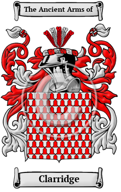 | Clarridge History, Family Crest & Coats of Arms Etymology of ClarridgeWhat does the name Clarridge mean? The name Clarridge was spawned by the ancient Anglo-Saxon culture that ruled a majority of Britain. It comes from the given name Clarice, a very popular personal name during the Middle Ages. 1 This name is of metronymic origin. In this case the original bearer of the surname was the mother, whose children were named after her first name. The name may also have originally been from Normandy as the Magni Rotuli Scaccarii Normanniae lists Muriel de la Clergesse, Normandy, 1198. 2 Early Origins of the Clarridge familyThe surname Clarridge was first found in Cambridgeshire where the Hundredorum Rolls of 1273 has two entries for the same individual with two different spellings: Henry serviens Claricie, Cambridgeshire; and Henry serviens Clarugge, Cambridgeshire. 1 Early History of the Clarridge familyThis web page shows only a small excerpt of our Clarridge research. Another 38 words (3 lines of text) covering the years 1618, 1653, 1656, 1660, 1695, 1705, 1728 and 1780 are included under the topic Early Clarridge History in all our PDF Extended History products and printed products wherever possible. Clarridge Spelling VariationsClarridge has been spelled many different ways. Before English spelling became standardized over the last few hundred years, spelling variations in names were a common occurrence. As the English language changed in the Middle Ages, absorbing pieces of Latin and French, as well as other languages, the spelling of people's names also changed considerably, even over a single lifetime. Many variations of the name Clarridge have been found, including Claridge, Clarridge, Clarges, Clargeis, Claredge, Clarredge, Claradge, Clarradge, Claridges, Clarridges, Claredges and many more. Early Notables of the Clarridge familySir Thomas Clarges (c 1618-1695), an English politician, Member of Parliament for the Sheriffdoms of Ross, Sutherland, and Cromarty in 1656, Member of Parliament for Westminster in 1660, he was a important messenger between Richard Cromwell and Charles II. George Monck, 1st Duke of Albemarle noted in his letter to Charles II telling him that "he chose to send Mr. Clarges to him, because he was the only... Another 67 words (5 lines of text) are included under the topic Early Clarridge Notables in all our PDF Extended History products and printed products wherever possible. Migration of the Clarridge family to IrelandSome of the Clarridge family moved to Ireland, but this topic is not covered in this excerpt. Another 34 words (2 lines of text) about their life in Ireland is included in all our PDF Extended History products and printed products wherever possible.