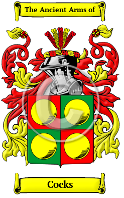 | Cocks History, Family Crest & Coats of Arms Etymology of CocksWhat does the name Cocks mean? The name Cocks comes from the ancient Anglo-Saxon culture of Britain. It was a name for a person who bore a fancied resemblance to a rooster. It was applied both to early risers and those who strutted proudly. "Thus 'cock' became the general sobriquet of a sharp and forward lad." 1 Alternatively, the name could have been derived as "a term of endearment, a diminutive, the same as ot or kin, used as a termination." 2 Early Origins of the Cocks familyThe surname Cocks was first found in the Domesday Book of 1086 where Aluuinus Coc was recorded in Cambridgeshire in 1066. In London, Coc de domo Abraham was listed in the Pipe Rolls of 1192. Later in Lincolnshire, Koc filius Pertuin was recorded in the Pipe Rolls of 1230 and Cock le Botiller was found in Cambridgeshire in 1281. Koc Forester and Kok de mari were both found in the Subsidy Rolls for Sussex in 1296. William and Godard le Cock were registered in Staffordshire in 1271 and Thomas le Cok was listed in the Assize Rolls for Essex in 1285. 3 In Shropshire, the first record of the family was found the Hundredorum Rolls of 1273 as Coc de Slepe. 1 "Though also scattered about the midland counties, Cox finds its great home in the south of England in the contiguous counties of Dorset and Somerset. It is fairly numerous in the counties of Gloucester, Oxford, and Warwickshire. Rare or absent in the north of England and in the eastern coast counties." 4 Early History of the Cocks familyThis web page shows only a small excerpt of our Cocks research. Another 73 words (5 lines of text) covering the years 1500, 1546, 1547, 1552, 1572, 1575, 1578, 1581, 1595, 1596, 1609, 1617, 1646, 1650, 1655, 1703, 1707, 1727, 1733, 1734, 1827, 1868 and 1890 are included under the topic Early Cocks History in all our PDF Extended History products and printed products wherever possible. Cocks Spelling VariationsOnly recently has spelling become standardized in the English language. As the English language evolved in the Middle Ages, the spelling of names changed also. The name Cocks has undergone many spelling variations, including Cox, Coxe and others. Early Notables of the Cocks family- Charles Cocks (1646-1727), British Member of Parliament for Droitwich and Worcester