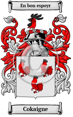England Etymology of CokaigneWhat does the name Cokaigne mean? The name Cokaigne is an ancient Anglo-Saxon name that was given to a person who was a person who was considered a dreamer derived from the Old French word "coquaigne," which referred to an imaginary paradise. Accordingly other references show Cockaigne or Cockayne as a medieval mythical land of extreme luxury as noted in poems like "The Land of Cockaigne." Early Origins of the Cokaigne familyThe surname Cokaigne was first found in Warwickshire, where many of the family claim descent from Baddesley Ensor, a parish, in the union of Atherstone in the hundred of Hemlingford, which dates back to the Domesday Book 1 where it was listed as Bedeslei and later as Baddesley Endeshower in 1327 2. Another branch of the Cockayne (or Cokayne) family settled at Ashbourne, Derbyshire since the twelfth century where they owned the manors of Ashbourne Hall and Pooley Hall until the late 1600s. One of the earliest records of the family was Sir John Cokayne (d. 1438), an early English judge, son of Edmund Cokayne of Ashbourne in Derbyshire and Pooley in Warwickshire. "In 1400 he was created chief Baron, was summoned to the council in the following year, and created a justice of the common pleas in 1405. In May of this year he was accused in parliament of having seized by force the manor of Baddesley Ensor in Warwickshire, and of keeping the owners out of possession, and was ordered to appear in person to answer to the charge. Of the further proceedings in this matter there is no record. The manor, however, remained in his possession, since by his will, which he made before starting for France with the military expedition sent to the aid of the Duke of Orleans in his struggle with the Duke of Burgundy in 1411-12, he entailed it upon his son John. " 3 Today, Cockayne is a hamlet and ridge in North Yorkshire but his village dates back to only 1972 when the 1925 acre Bransdale estate was transferred to the National Trust through National Land Fund. For the most part, the village is owned by the National Trust. Early History of the Cokaigne familyThis web page shows only a small excerpt of our Cokaigne research. Another 99 words (7 lines of text) covering the years 1193, 1219, 1221, 1228, 1273, 1332, 1509, 1547, 1561, 1602, 1608, 1613, 1619, 1626, 1631, 1658, 1661, 1671, 1684, 1687, 1688 and 1716 are included under the topic Early Cokaigne History in all our PDF Extended History products and printed products wherever possible. Cokaigne Spelling VariationsOnly recently has spelling become standardized in the English language. As the English language evolved in the Middle Ages, the spelling of names changed also. The name Cokaigne has undergone many spelling variations, including Cockayne, Cokayne, Cocaine, Cokayn, Cokein, Cokaigne, Cokkaigne, Cokkayn, Cockayn and many more. Early Notables of the Cokaigne familyThomas Cokayn, who was knighted during the reign of King Henry VIII (1509-1547); Sir William Cockayne (Cokayne) (1561-1626), English merchant in London, alderman, the first Governor of Londonderry (1613) and later Lord Mayor of London in 1619; Charles Cokayne, 1st Viscount Cullen (1602-1661); Brien Cokayne, 2nd Viscount Cullen (1631-1687); Charles Cokayne, 3rd Viscount Cullen (1658-1688); Charles Cokayne, 4th Viscount Cullen (1687-1716); Sir Aston... Another 63 words (4 lines of text) are included under the topic Early Cokaigne Notables in all our PDF Extended History products and printed products wherever possible. Migration of the Cokaigne familyTo escape the unstable social climate in England of this time, many families boarded ships for the New World with the hope of finding land, opportunity, and greater religious and political freedom. Although the voyages were expensive, crowded, and difficult, those families that arrived often found greater opportunities and freedoms than they could have experienced at home. Many of those families went on to make significant contributions to the rapidly developing colonies in which they settled. Early North American records indicate many people bearing the name Cokaigne were among those contributors: Mary Cockane who arrived in Maryland in 1674.
