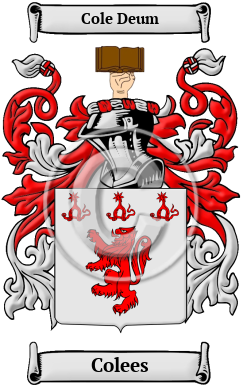 England Scotland Etymology of ColeesWhat does the name Colees mean? Colees is a name whose ancestors lived among the Picts, a tribe in ancient Scotland. The Colees family lived in Coull, a parish, in the district of Kincardine O'Neil, county of Aberdeen. "This place is supposed to have taken its name, which signifies a "corner," from its situation in the south-eastern extremity of the district of Cromar." 1 Early Origins of the Colees familyThe surname Colees was first found in Aberdeenshire (Gaelic: Siorrachd Obar Dheathain), where one of the first records of the family was "William de Cull [who] was one of the witnesses to a charter by John, Earl of Huntington to Norman filius Malcolm of the lands of Lesslyn etc., between 1219-1237." 2 Coull Castle was an 13th-century castle to the south of Coull. Only traces of the castle can be found today. Some of the first records of the family in Scotland include: John Cowl who possessed a tenement in Glasgow in 1458, and Sir John Cowill, a cleric, was witness in Aberdeen, 1567. Patrick Coule at Newburgh is mentioned in the Lindores Chartulary in 1479. David Cowle, a native of Scotland, had letters of naturalization in England in 1481, and in the same year Alexander Coule was admitted burgess of Aberdeen." 2 Further south in northern England, the Lay Subsidy Rolls of 1332 listed John de Couhill, of Rishton, Lancashire; and John de Coule, of Blackburn, Lancashire, 1332. 3 "The Cowells of Lancashire probably take their name from Cowhill, a district and seat in Lancashire." 4 Early History of the Colees familyThis web page shows only a small excerpt of our Colees research. Another 173 words (12 lines of text) covering the years 1219, 1479, 1481, 1554, 1567, 1570 and 1611 are included under the topic Early Colees History in all our PDF Extended History products and printed products wherever possible. Colees Spelling VariationsThe appearance of the printing press and the first dictionaries in the last few hundred years did much to standardize spelling. Prior to that time scribes spelled according to sound, a practice that resulted in many spelling variations. Colees has been spelled Coull, Coul, Cowill, Cowell, Cull, Cowles, Cowl, Cowle and many more. Early Notables of the Colees familyAnother 27 words (2 lines of text) are included under the topic Early Colees Notables in all our PDF Extended History products and printed products wherever possible. Migration of the Colees familyThe expense of the crossing to the North American colonies seemed small beside the difficulties of remaining in Scotland. It was a long and hard trip, but at its end lay the reward of freedom. Some Scots remained faithful to England and called themselves United Empire Loyalists, while others fought in the American War of Independence. Much of this lost Scottish heritage has been recovered in the last century through Clan societies and other patriotic Scottish organizations. A search of immigration and passenger lists revealed many important, early immigrants to North America bearing the name of Colees: John Coule who settled in Virginia in 1654; Francis Coull arrived in Philadelphia in 1856; Martin and Sam Cowl arrived in San Francisco in 1850; Ira Cowles arrived in New York in 1820 with his apprentice.