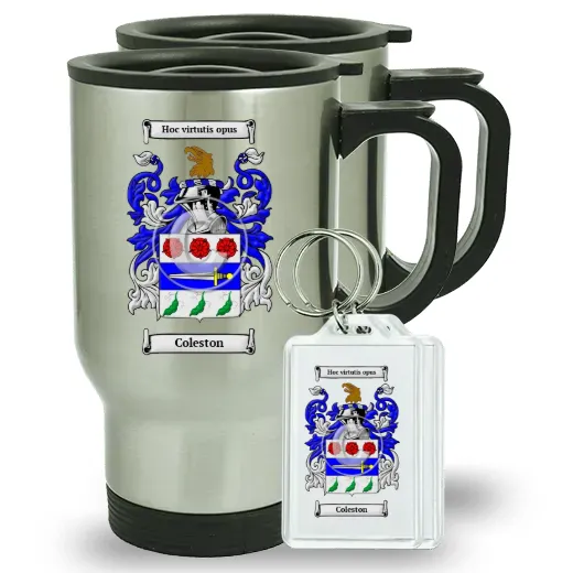 Pair of Travel Mugs and pair of Keychains