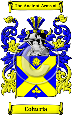 The surname Coluccia was first found in L'Aquila, capital city of the Abruzzo region and of the Province of L'Aquila. Frederick II, Holy Roman Emperor and King of Sicily (1194-1250) began the construction of the city and was completed by his son, Conrad IV of Germany in 1254. Conrad's brother Manfred destroyed the city in 1259 after his brother's death, but it was soon rebuilt by Charles I of Anjou. One of the first records of the name was Angelini Colucci, a writer in Ascoli in the 12th century.