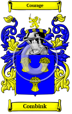 The surname Combink was first found in Norfolk, Lincolnshire, and Yorkshire in England, in the 12th and 13th centuries. Robert of Comyn (Comines,) (died 1069) was a noble who accompanied William the Conqueror and was made Earl of Northumberland. "He so commended himself to the king by his military skill that he was chosen at the end of 1068 for the difficult task of reducing the north of England to obedience. William I conferred on him the earldom of Northumberland, vacant by the flight of Gospatric. Comin was the founder of the family of Comyn, many of whom played an important part in the history of Scotland." 4