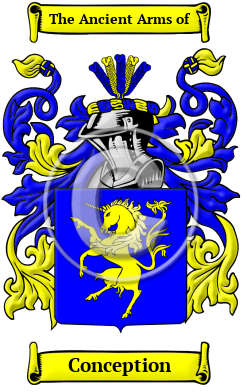 The surname Conception was first found in Old Castile, in the heart of Spain, where the name originated in Visigothic times.