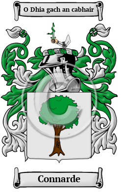 | Connarde History, Family Crest & Coats of Arms Etymology of ConnardeWhat does the name Connarde mean? Today's Irish surnames are underpinned by a multitude of rich histories. The name Connarde originally appeared in Gaelic as Ó Conchobhair, derived from the personal name Conchobhar. 1 Early Origins of the Connarde familyThe surname Connarde was first found in Connacht. There were six different septs of this famous name scattered throughout Ireland, of which four continue to boast many members. However, the most important O'Connors were those of Connacht, divided into three main branches: O'Conor Don; O'Conor Roe; and O'Conor Sligo. The Connacht O'Connors were direct descendants of Conchobhar, King of Connacht, who died in 971 AD. Furthermore, this family produced the last two High Kings of Ireland: Turlough O'Connor (1088-1156) and Roderick O'Connor (1116-1196). It was the invasion of Leinster by Roderick O'Conner on behalf of the Prince of West Brefney that caused the King of Leinster, Dermod MacMorough, to flee to England for aid. This resulted in the Strongbow Invasion of 1168, the beginning of English domination over Ireland. Despite remaining stubbornly Catholic, the O'Connor family continued to maintain their elite position among the Irish nobility throughout the entire period of British dominance. Early History of the Connarde familyThis web page shows only a small excerpt of our Connarde research. Another 182 words (13 lines of text) covering the years 1002, 1641, 1652, 1666, 1698, 1710, 1763, 1791, 1838, 1852 and 1906 are included under the topic Early Connarde History in all our PDF Extended History products and printed products wherever possible. Connarde Spelling VariationsPeople who were accounted for by scribes and church officials often had their name recorded many different ways because pronunciation was the only guide those scribes and church officials had to go by. This resulted in the problem of one person's name being recorded under several different variations, creating the illusion of more than one person. Among the many spelling variations of the surname Connarde that are preserved in archival documents are Connor, Conner, Conor, Connors, O'Connor, Connores, Conner, Connar, Connars, O'Connar, O'Conner, Connair, Connairs, Connaire, Connaires, Cawner, Cawners, Caunnor, Cauner, Cauners and many more. Early Notables of the Connarde familyCabrach O'Conor and Hugh O'Connor, son and grandson of O'Conor Don, took a prominent part in the 1641-1652 wars