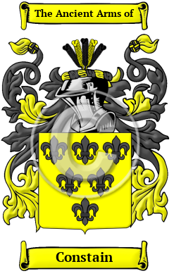 | Constain History, Family Crest & Coats of Arms Etymology of ConstainWhat does the name Constain mean? The ancient and distinguished surname Constain is derived from the Old French name "Constantin," which is itself derived from the Latin "Constantinus," meaning "steadfast and faithful." This name was popular throughout Continental Europe, due to the first Christian Roman Emperor, Constantine the Great, for whom Byzantium was renamed Constantinople. The name was brought to England in the wake of the Norman Conquest. Early Origins of the Constain familyThe surname Constain was first found in Devon and Cornwall where "Constantine, King of Devon and Cornwall in latter half of sixth century, after a wicked life, was 'converted to the Lord.' He then abandoned his throne and became a monk under S. Carthach at Rahin. King's County, Ireland. He afterwards crossed over to Scotland, founded the church of Govan, and suffered martyrdom in Kintyre, where there is a church, Kilchousland, named after him. In Angus he is vulgarly called Cousnan." 1 Another source notes: "Nigel was Viscount of Constantine or Coutances 1047, when he revolted against Duke William and lost his vast estates. Of his descendants, Ralph de Constantine was seated in Salop 1086 2. Hugh de Constantine, his son, granted lands to Salop Abbey before 1121. Umfrid de Constantine witnessed its foundation charter 1093, and Richard de Constantine that of Haghmond Abbey 1099. The family long flourished in Salop, and temp. Henry II. sent a branch to Ireland, of which Geoffry de Constantine witnessed the charter of St. Thomas, Dublin, 1177, and founded Tristernagh Abbey. " 3 Early History of the Constain familyThis web page shows only a small excerpt of our Constain research. Another 132 words (9 lines of text) covering the years 1086, 1172, 1173, 1189, 1199, 1236, 1501, 1524, 1559 and 1640 are included under the topic Early Constain History in all our PDF Extended History products and printed products wherever possible. Constain Spelling VariationsSpelling variations of this family name include: Constantine, Constantin, Cossentine, Considene, Consterdine, Constyn, Costantine and many more. Early Notables of the Constain familyWalter de Constantiis, who was Vice Chancellor of England in 1173.