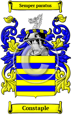 England Etymology of ConstapleWhat does the name Constaple mean? Constaple is a name that was carried to England in the great wave of migration from Normandy following the Norman Conquest of 1066. It is a name for a law enforcement officer of a parish. The surname is derived from the Old French word, cunestable. 1 Early Origins of the Constaple familyThe surname Constaple was first found in Yorkshire where the family descend from Robert de Laci, whose ancestors had been constables of Chester under the celebrated Hugh Lupus temp. William the Conqueror. 2 The first records of the family include: Richard Constabl' who was listed in the Pipe Rolls of Cheshire in 1130 and Alice Cunestabl' who was listed in the Pipe Rolls of Lincolnshire in 1200. 1 The Hundredorum Rolls of 1273 list: Jordan Constabul in Northumberland; and Clemens le Constable in Kent. The Yorkshire Poll Tax Rolls of 1379 list: Margareta Constabille and Richard Constabularius. 3 The parish of Melton-Constable is of great significance to the family. "This place is of great antiquity, and at the time of the Domesday Survey was granted to the bishops of Thetford, of whom it was held by Roger de Lyons, whose descendants assumed the name of Constable, from the office which they held under the see." 4 Wassand in the East Riding of Yorkshire was home to another branch of the family. " It is called in Domesday Book Wadsande, and after passing through the abbeys of Meaux and of St. Mary at York, and several families, came, in the time of Henry VIII., to the Constables, by whom it is still possessed." 4 Again, in the East Riding of Yorkshire, we found another early reference at Benningholme. " Among the chief owners of land in former times were the Constables, who had possessions in the township so early as the time of Henry III.: several of the farmhouses contain ancient remains." 4 Early History of the Constaple familyThis web page shows only a small excerpt of our Constaple research. Another 192 words (14 lines of text) covering the years 1150, 1390, 1443, 1478, 1518, 1537, 1562, 1590, 1592, 1595, 1613, 1647, 1651, 1655, 1664, 1682, 1710 and 1746 are included under the topic Early Constaple History in all our PDF Extended History products and printed products wherever possible. Constaple Spelling VariationsThe English language only became standardized in the last few centuries. For that reason, spelling variations are common among many Anglo-Norman names. The shape of the English language was frequently changed with the introduction of elements of Norman French, Latin, and other European languages; even the spelling of literate people's names were subsequently modified. Constaple has been recorded under many different variations, including Constable, Constables and others. Early Notables of the Constaple familySir Marmaduke Constable (1443-1518), English soldier; Sir Robert Constable (c. 1478-1537) of Flamborough, Sheriff of Yorkshire, executed for treason for taking part in the Pilgrimage of Grace; Sir William Constable, 1st Baronet (baptized 1590-1655), English soldier, politician and regicide, son of Sir Robert... Another 42 words (3 lines of text) are included under the topic Early Constaple Notables in all our PDF Extended History products and printed products wherever possible. Migration of the Constaple familyTo escape the uncertainty of the political and religious uncertainty found in England, many English families boarded ships at great expense to sail for the colonies held by Britain. The passages were expensive, though, and the boats were unsafe, overcrowded, and ridden with disease. Those who were hardy and lucky enough to make the passage intact were rewarded with land, opportunity, and social environment less prone to religious and political persecution. Many of these families went on to be important contributors to the young nations of Canada and the United States where they settled. Constaples were some of the first of the immigrants to arrive in North America: Robert Constable who settled in Virginia in 1624; Sarah Constable settled in Virginia in 1656; Thomas Constable and his sister Blanche arrived in Philadelphia, Pennsylvania in 1683.