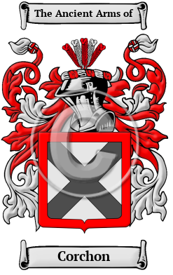 Spelling variations of this family name include: Courchaine, Courchesne, Courchinoux, Corchin, Corchon, Courchetet, Courchinoux, Courchene, Courcheane and many more.