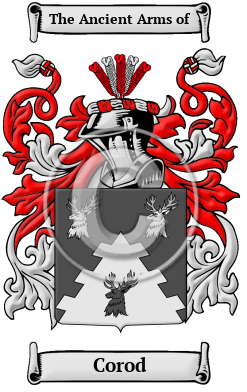 The history of the Corod family goes back to the ancient Anglo-Saxon culture of Britain. It is derived from the family living in Yorkshire, where the name was taken from the town of Cawood in the county's West Riding. The place-name was first recorded as Kawuda in 963 AD and was originally derived from the Old English words ca, meaning jackdaw, and wudu meaning woods, and described a wood where by jackdaws were common.