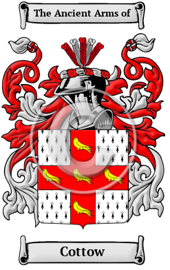 The surname Cottow was first found in Scotton at various villages so named throughout England. They include: Scotton, a village and civil parish in Lincolnshire, where the 2001 census lists a population of 531; Scotton, a village and civil parish in the Richmondshire district of North Yorkshire; and Scotton, a village and civil parish in the Harrogate district of North Yorkshire. Accordingly, Yorkshire is the most likely place from where the surname originates. As far as the Scottow variant, Scottow is a village and civil parish in Norfolk.